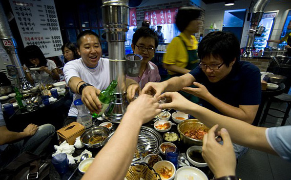 Giống như Việt Nam, văn hóa nhậu nhẹt tại Hàn Quốc cũng rất phát triển, thậm chí còn được coi là một tập quán của người dân. Cứ mỗi tháng một lần, hoặc mỗi tuần một lần, cao hứng hơn thì dăm ba ngày 1 chuyến, người dân Hàn Quốc sẽ dắt nhau đến các quán nhậu, "chén chú chén anh" nói đủ thứ chuyện trên trời dưới biển. Chuyện công việc, chuyện chồng con, kể cả chuyện kí hợp đồng, tất cả đều có thể xảy ra trên bàn rượu.
