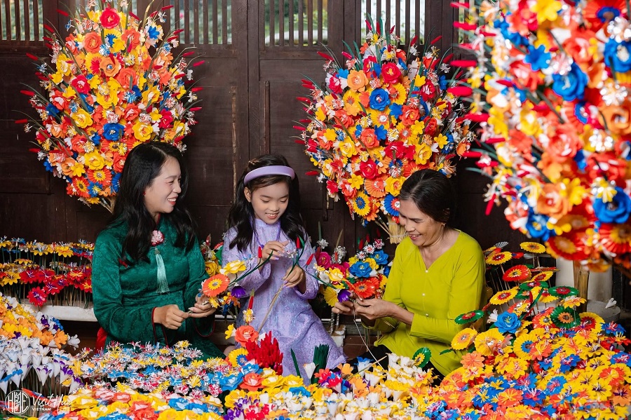 Mỗi độ xuân về, khi những cơn gió lạnh cuối đông dần nhường chỗ cho nắng ấm dịu dàng, làng hoa giấy Thanh Tiên (xã Phú Mậu, thành phố Huế) lại khoác lên mình một vẻ đẹp rực rỡ, tràn đầy sức sống. Ngôi làng nhỏ nằm bên dòng sông Hương hiền hòa ấy từ bao đời nay đã gắn bó với nghề làm hoa giấy truyền thống, một nét văn hóa độc đáo của xứ Huế mộng mơ.